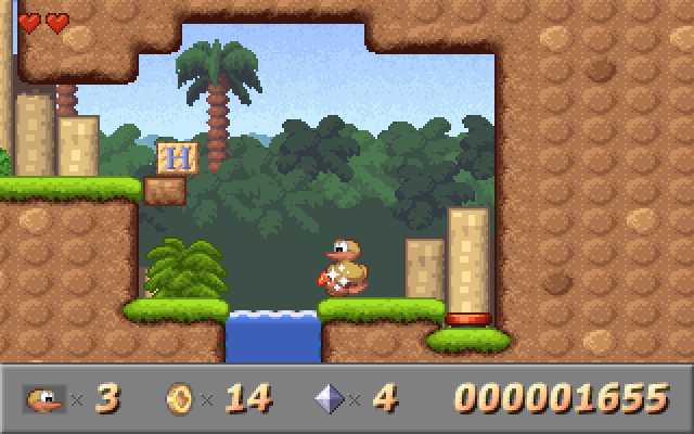 Get lost in a colourful cartoon world with Charlie the Duck! Charlie is a cute yellow duck that runs, jumps and swims through 18 varied levels, avoiding obstacles and finding hidden treasure. If you like platform games, give Charlie 2 a try!